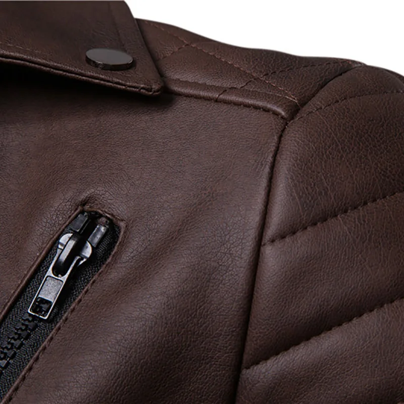 Куртка мужская кожаная с лацканами, модная повседневная мотоциклетн...