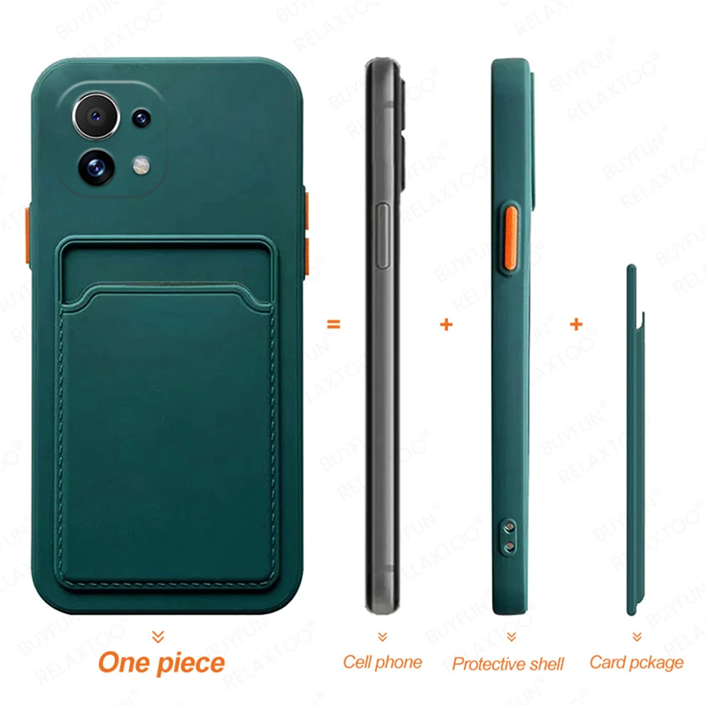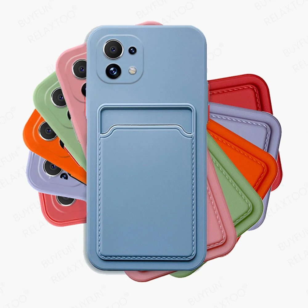Жидкий силиконовый чехол для телефона Xiaomi 11 Lite Pro Ultra Mi 11i, тонкая задняя крышка, кошелек, слот для карт, держатель, мягкий чехол