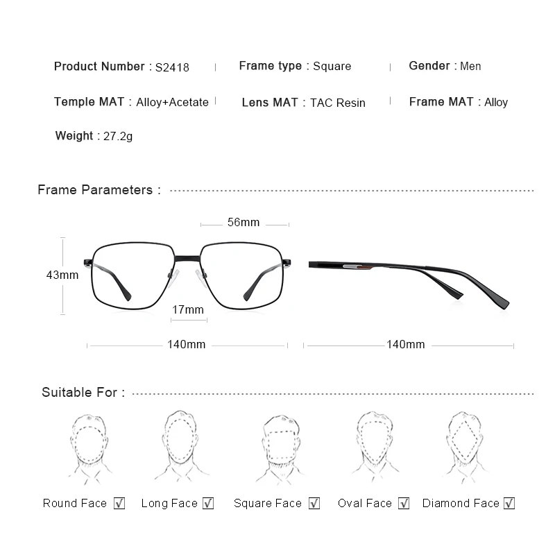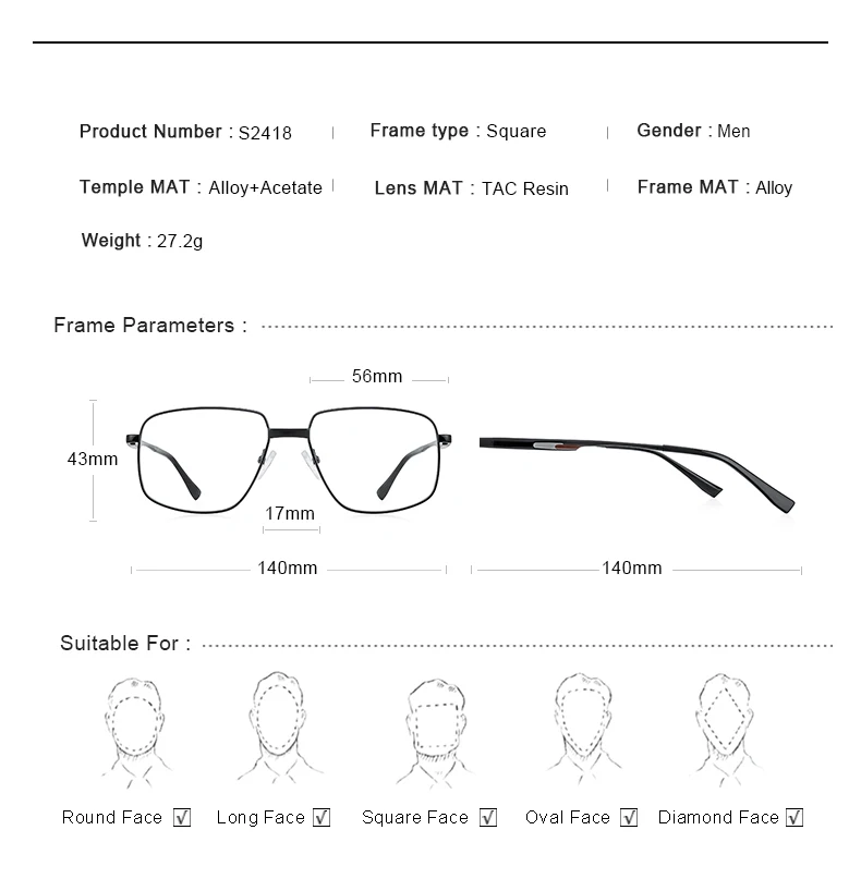 Оправа для очков Мужскаяженская из титанового сплава , S2252