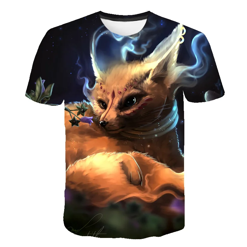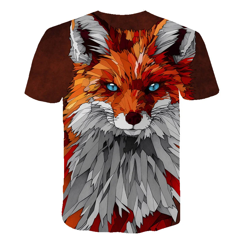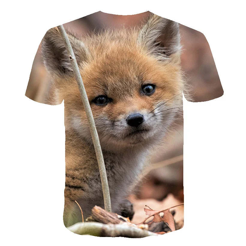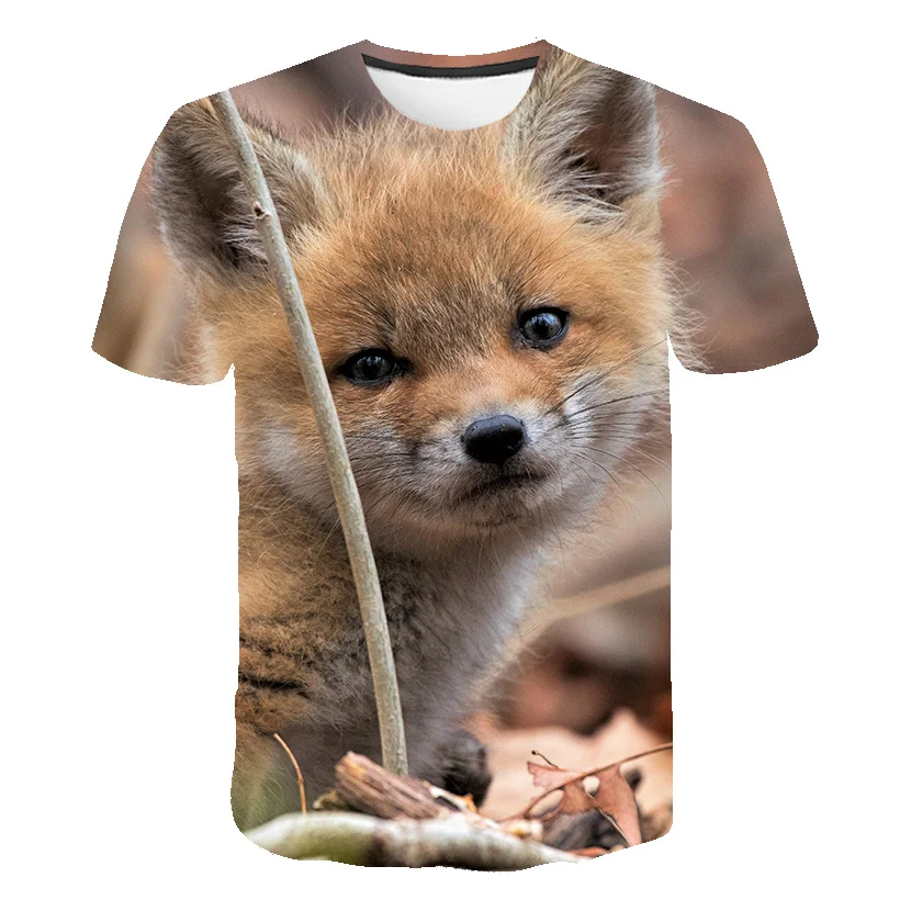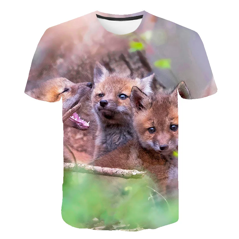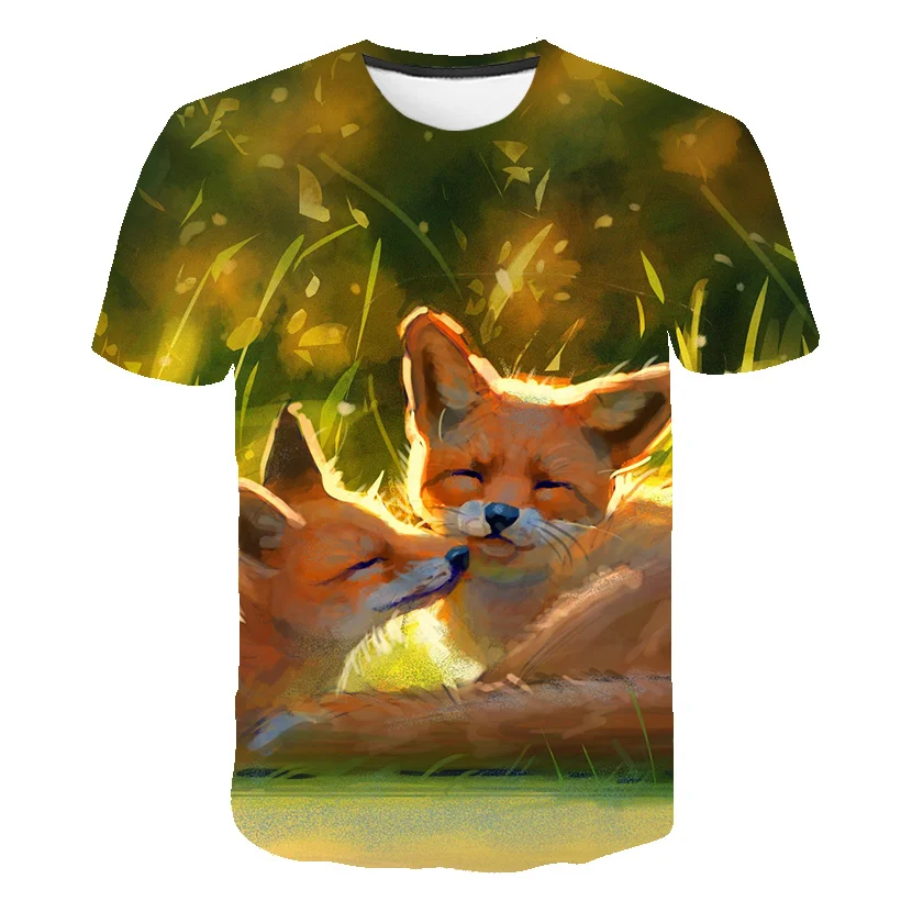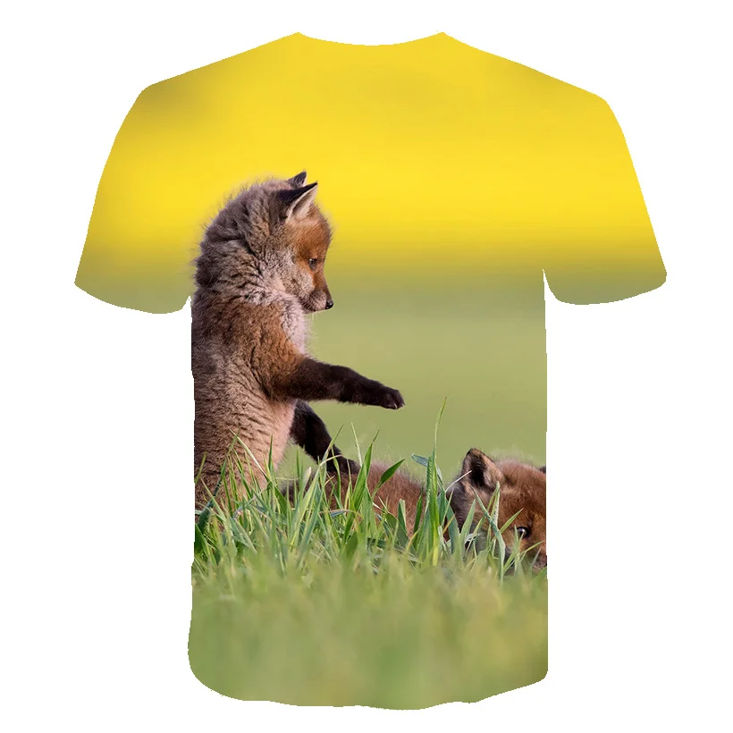 Новинка 2020, летняя мужская футболка, одежда с круглым вырезом и короткими рукавами, футболка с 3D-принтом животных и лисы, Мужская футболка, детский размер