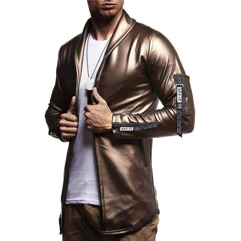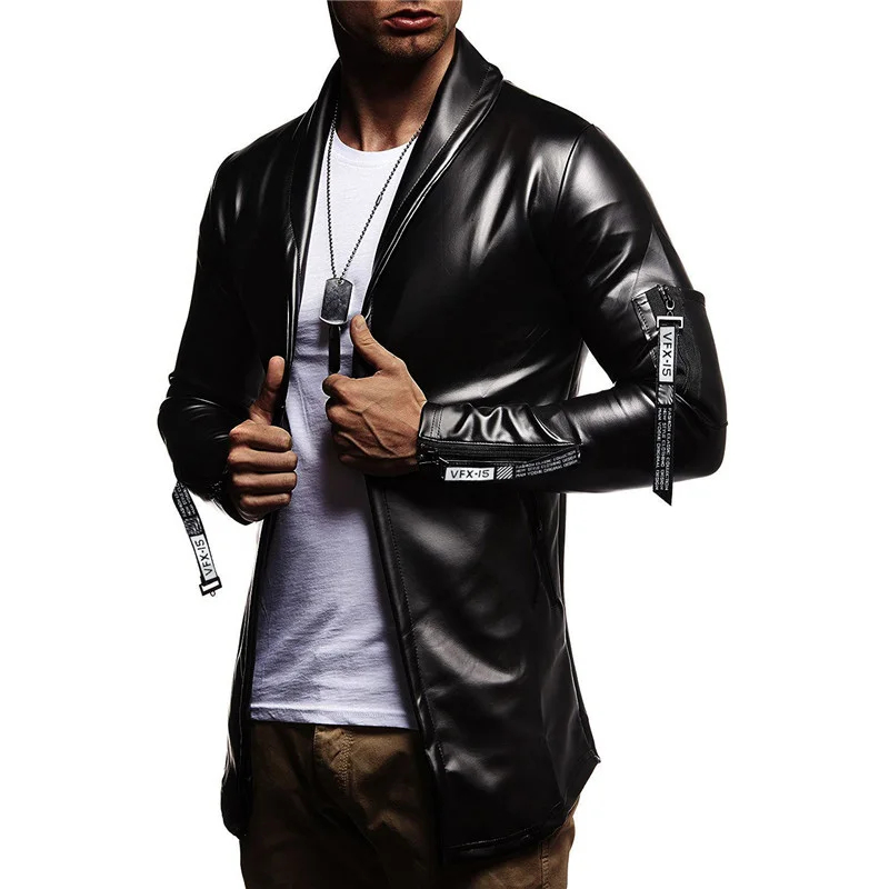 Пиджак мужской из искусственной кожи, Роскошный Блейзер, однотонная...