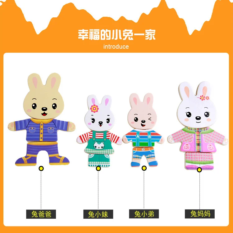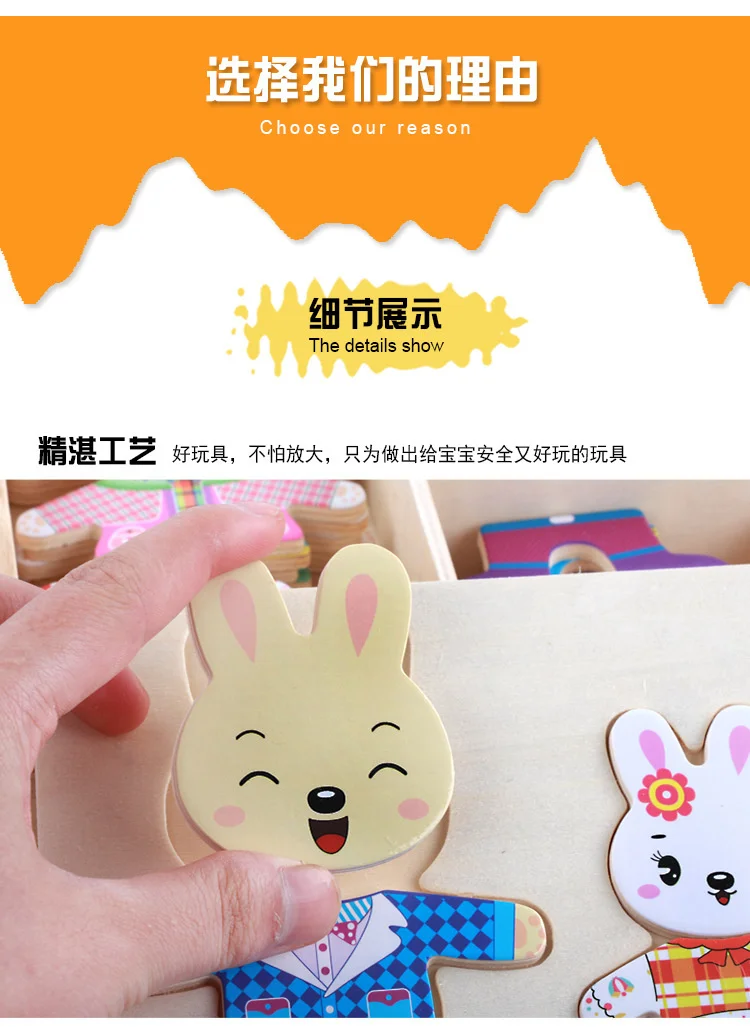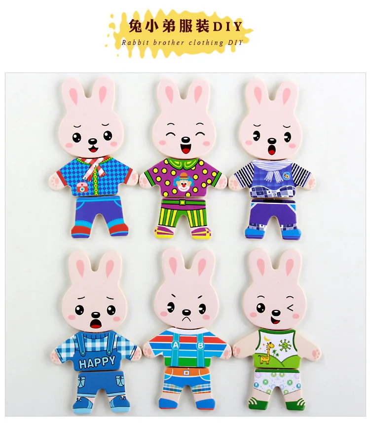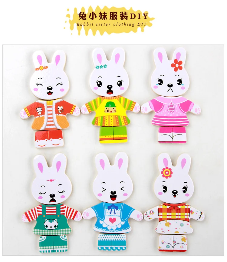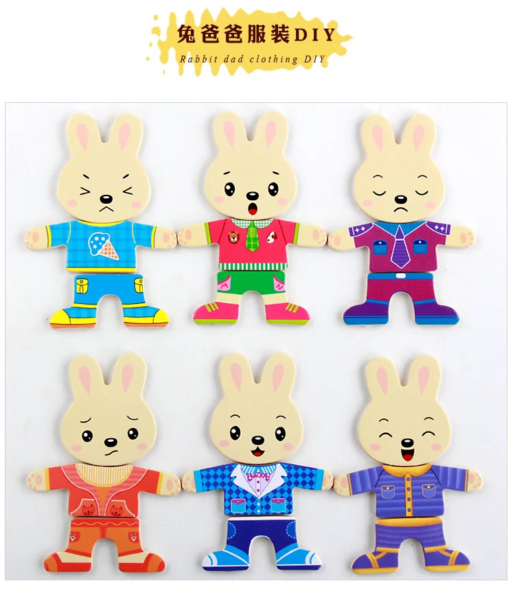 Мультяшная деревянная игрушка для переодевания детей для раннего образования, пазл, переодевание, детские игрушки-пазлы для детей, подарок Монтессори