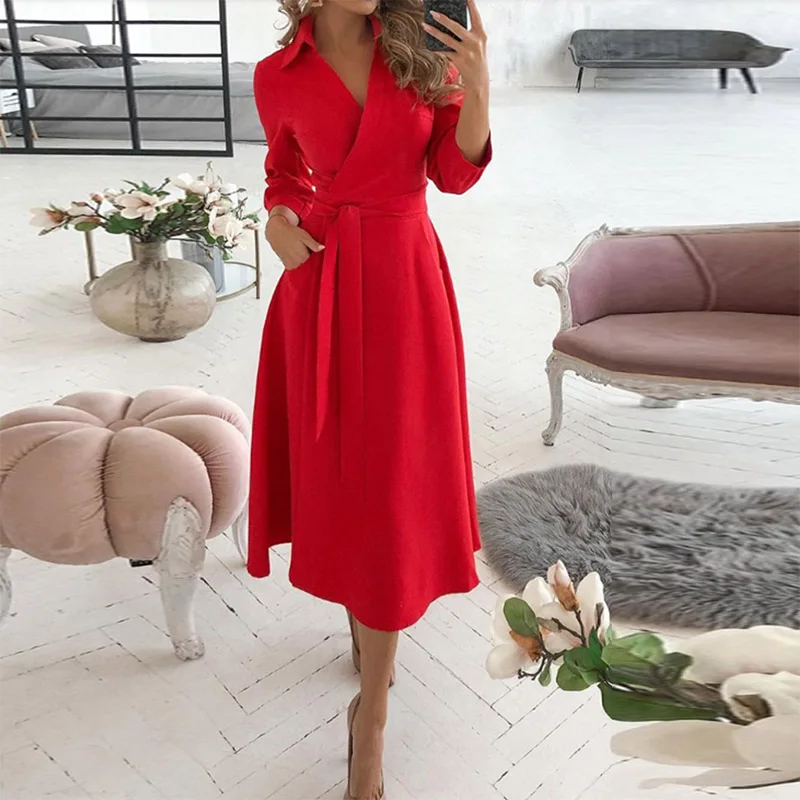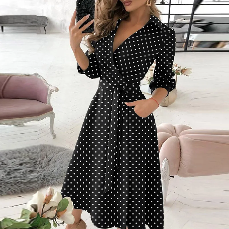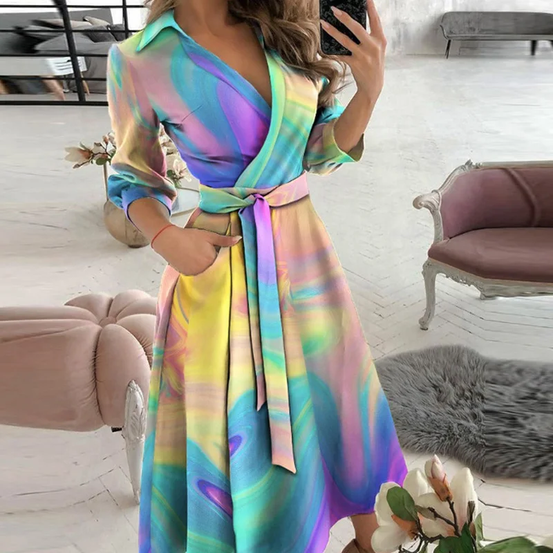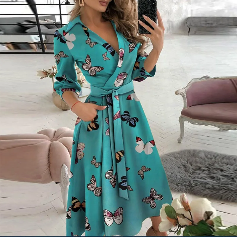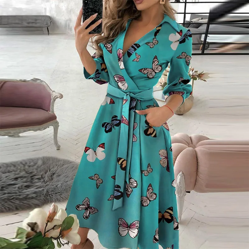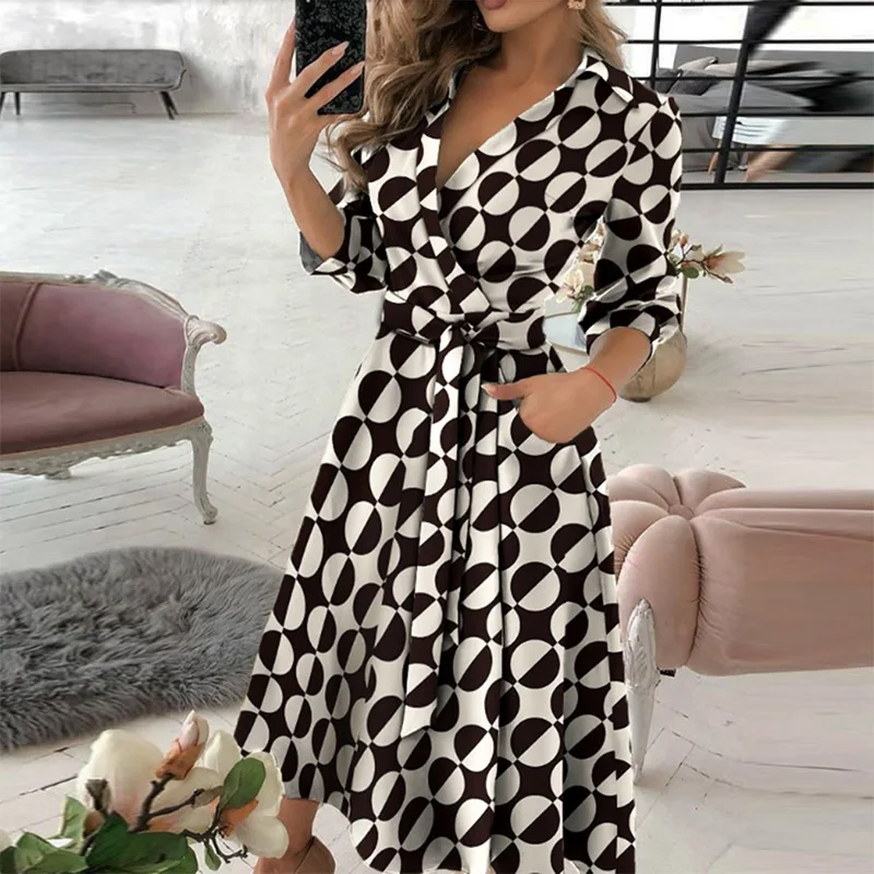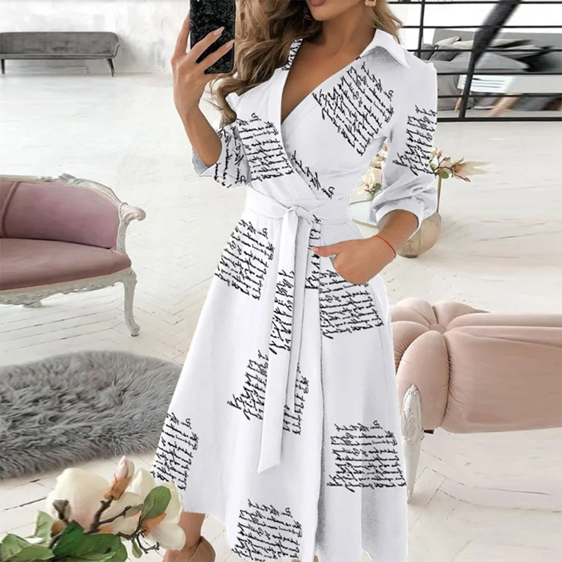 Платье-трапеция женское с длинным рукавом, V-образным вырезом и буквенным принтом