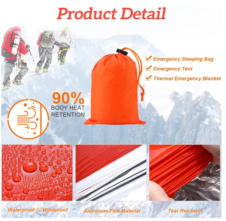 Туристический Спальный Мешок Bivy, термоодеяло из майлара, водонепроницаемое экстренное снаряжение, компактное ветрозащитное, прочное