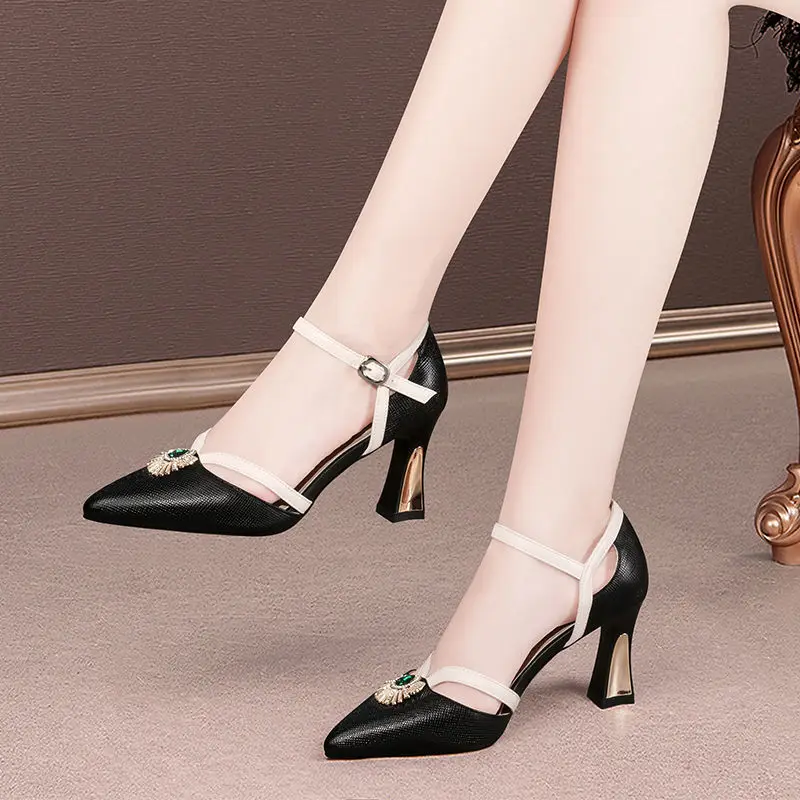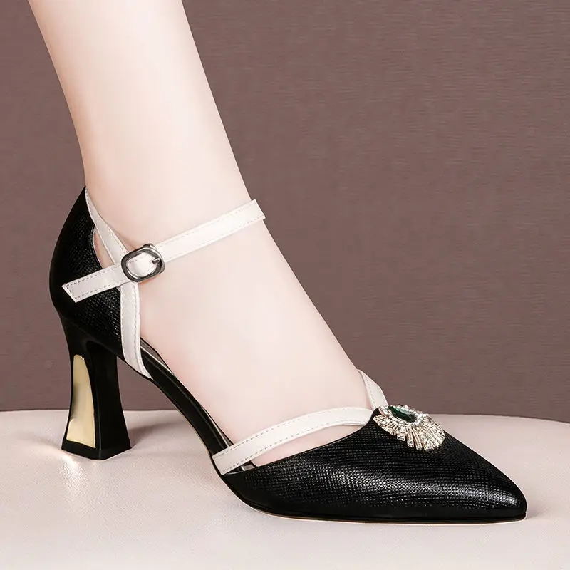 Женские милые зеленые туфли на высоком каблуке с острым носком и пряжкой, привлекательные женские туфли для вечерние НКИ, ночного клуба, черные туфли на каблуке, женские туфли E9307