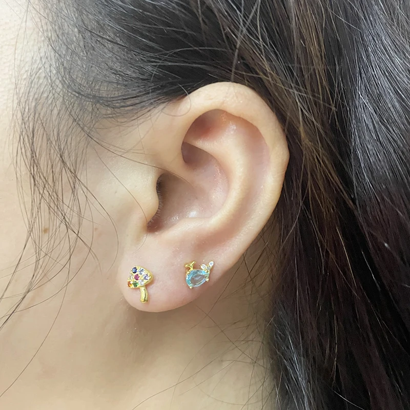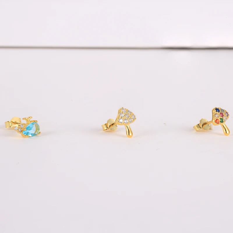 Серьги-гвоздики из серебра 925 пробы с радужным цирконием, длинные серьги-подъемники, милые китовые грибы, серьги-гвоздики