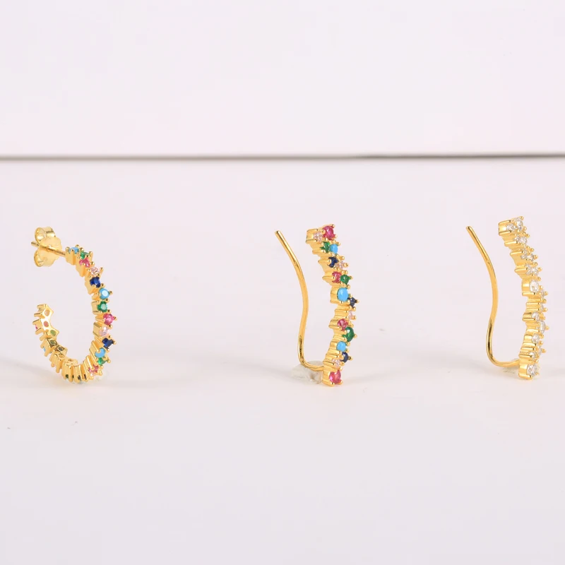 Женские серьги-гвоздики из серебра 100% пробы с разноцветным Цирконом