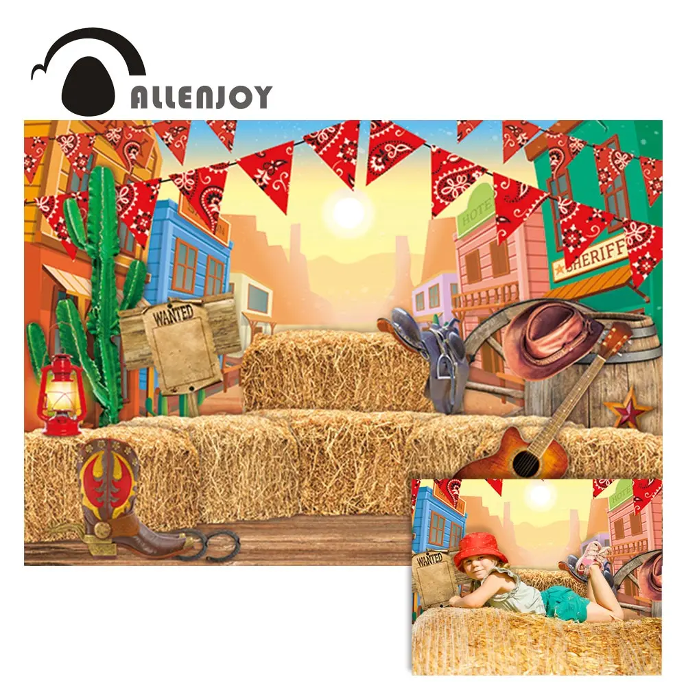 Allenjoy Западный город фон Дикий Запад ковбойский душ Детский День Рождения Вечеринка поставки стог Декор баннер