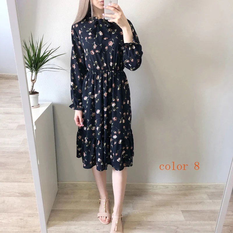 Женское винтажное платье-миди с бантом, белое платье трапециевидной формы с цветочным принтом, осень 2021