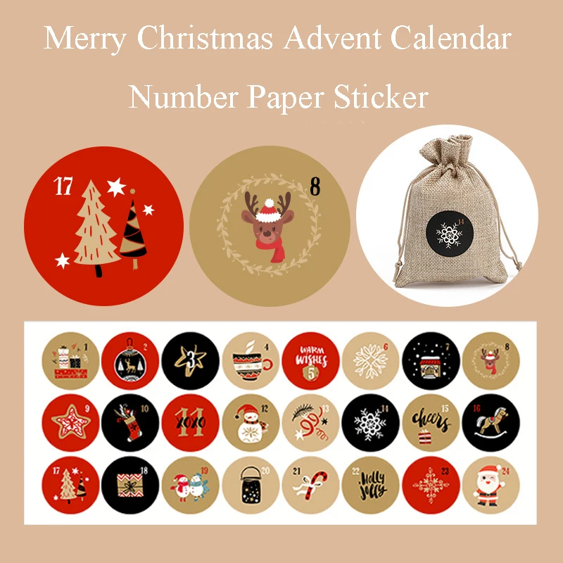 24 шт./компл. с Рождеством и новым календарем, бумажная наклейка с номером печенья, конфетная печать, наклейка s, подарочная упаковка «сделай сам», этикетки с рождественским декором