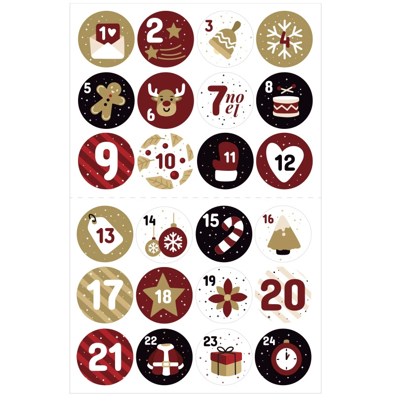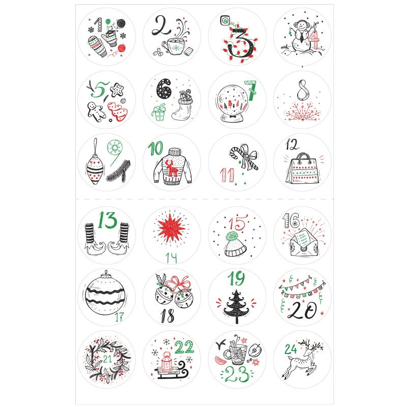 24 шт.компл. с рождеством, наклейка с календарем и цифрами, бумажна...