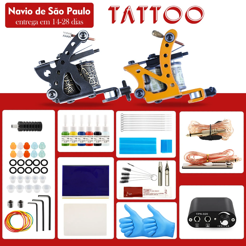 Тату-машинки, набор для тату, пистолет с чернилами, блок питания, педаль, инструменты для боди-арта, набор тату, полный набор аксессуаров от RUUS