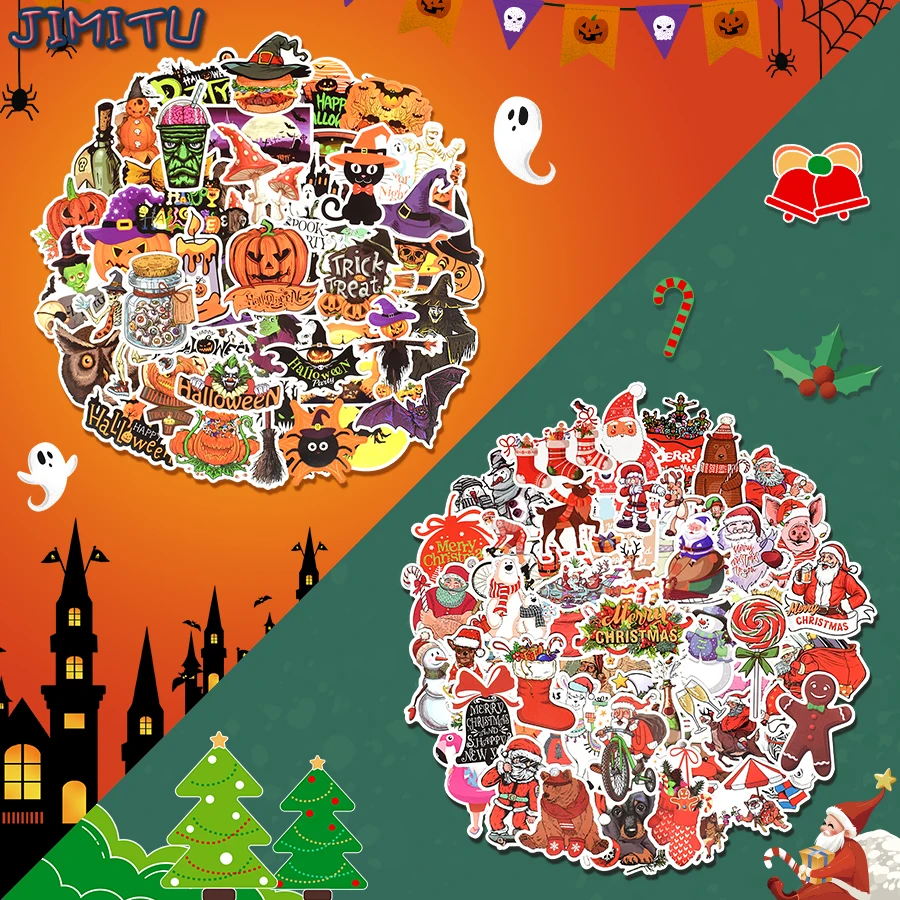 Мультяшные рождественские наклейки для детей, подарок на Хэллоуин, декоративные наклейки, водонепроницаемые неоновые наклейки на ноутбук, скрапбукинг вечерние вечеринку, фестиваль, упаковка