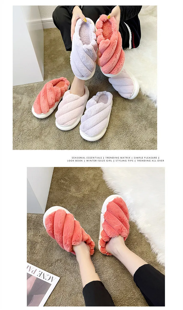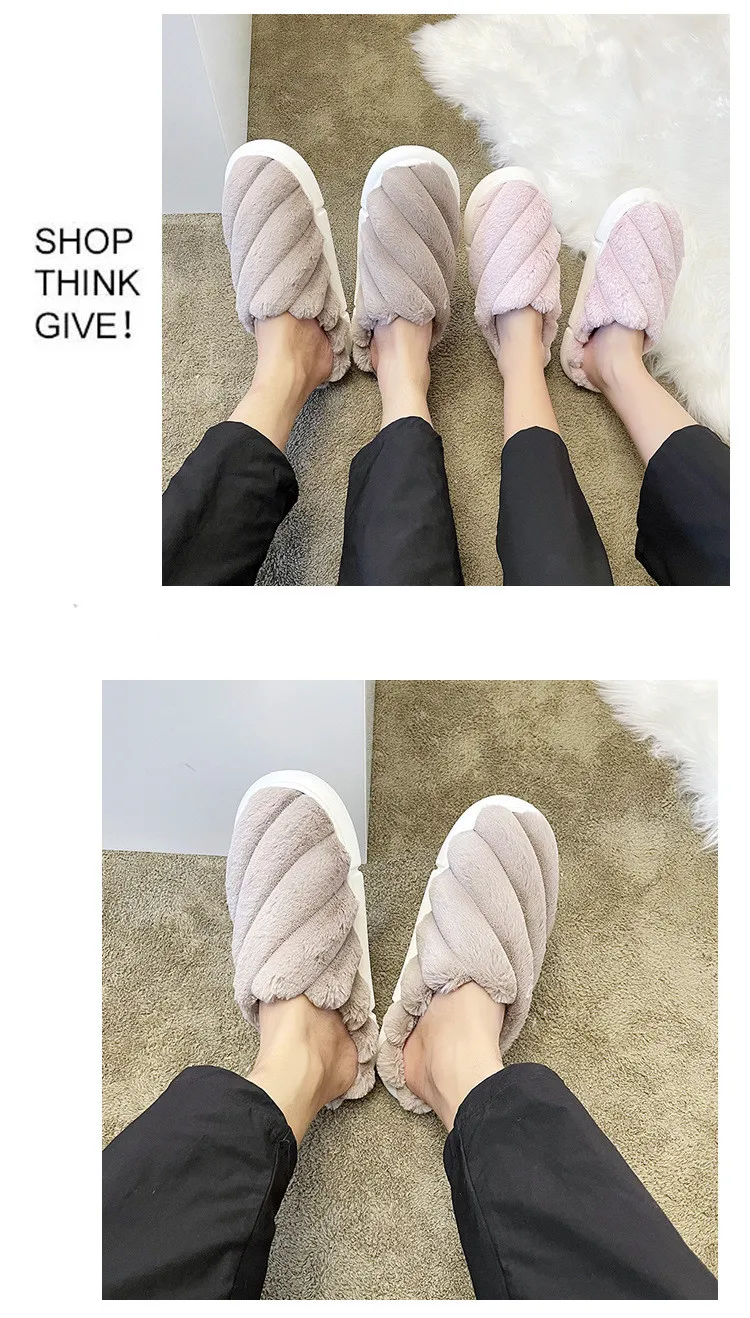 Женские теплые пушистые тапочки, женские зимние меховые домашние та...