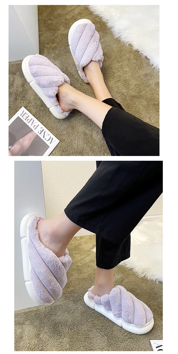 Женские зимние тапочки; Домашняя обувь; Женские мягкие плюшевые шлепанцы на платформе из ЭВА; Пышные домашние шлепанцы; Chaussure Femme