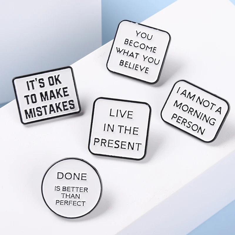 Вдохновляющие эмалевые булавки с цитатами, Готово лучше, чем префек...