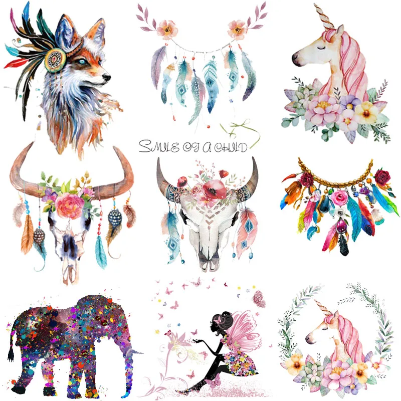 Мультфильм патч перо Животных Патчи термо-Стикеры для одежды на одежде слон Крупный рогатый скот железо на переноске для одежды теплопередача сделай сам