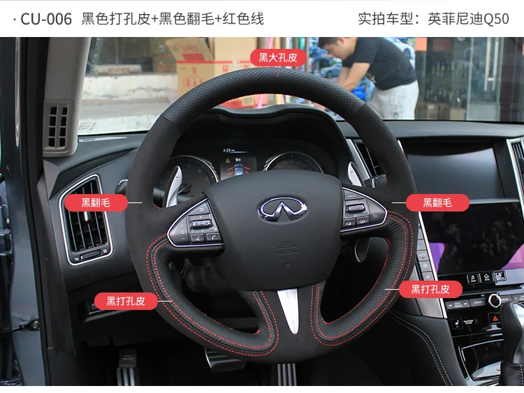 Чехол на руль для Infiniti G25 G37 EX25 FX35 QX56, прошитая вручную, из кожи и замши, аксессуары для салона автомобиля