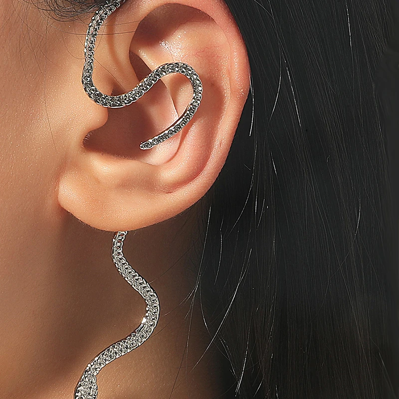Эффектные длинные манжеты в виде змеи для женщин, винтажные тонкие пикантные таинственные серьги в виде змеи, на удачу, имитация пирсинга, серьги, ювелирные изделия, подарки