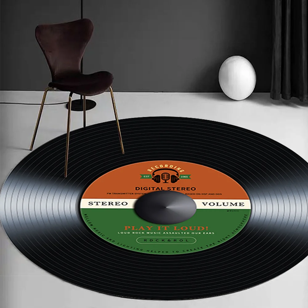 Круглый ковер с рисунком музыки и виниловых пластинок, мягкие ковры...