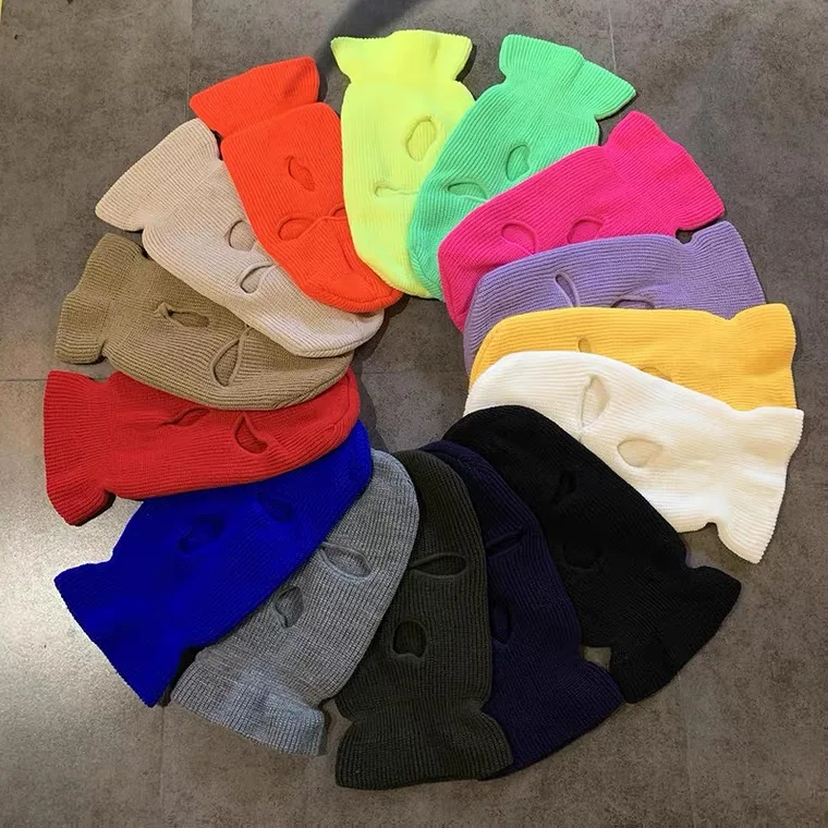 Лыжная маска с полным лицевым покрытием, шапка, 3 отверстия, Балаклава, армейская тактическая CS, ветрозащитная вязаная шапка, зимние теплые шапки унисекс