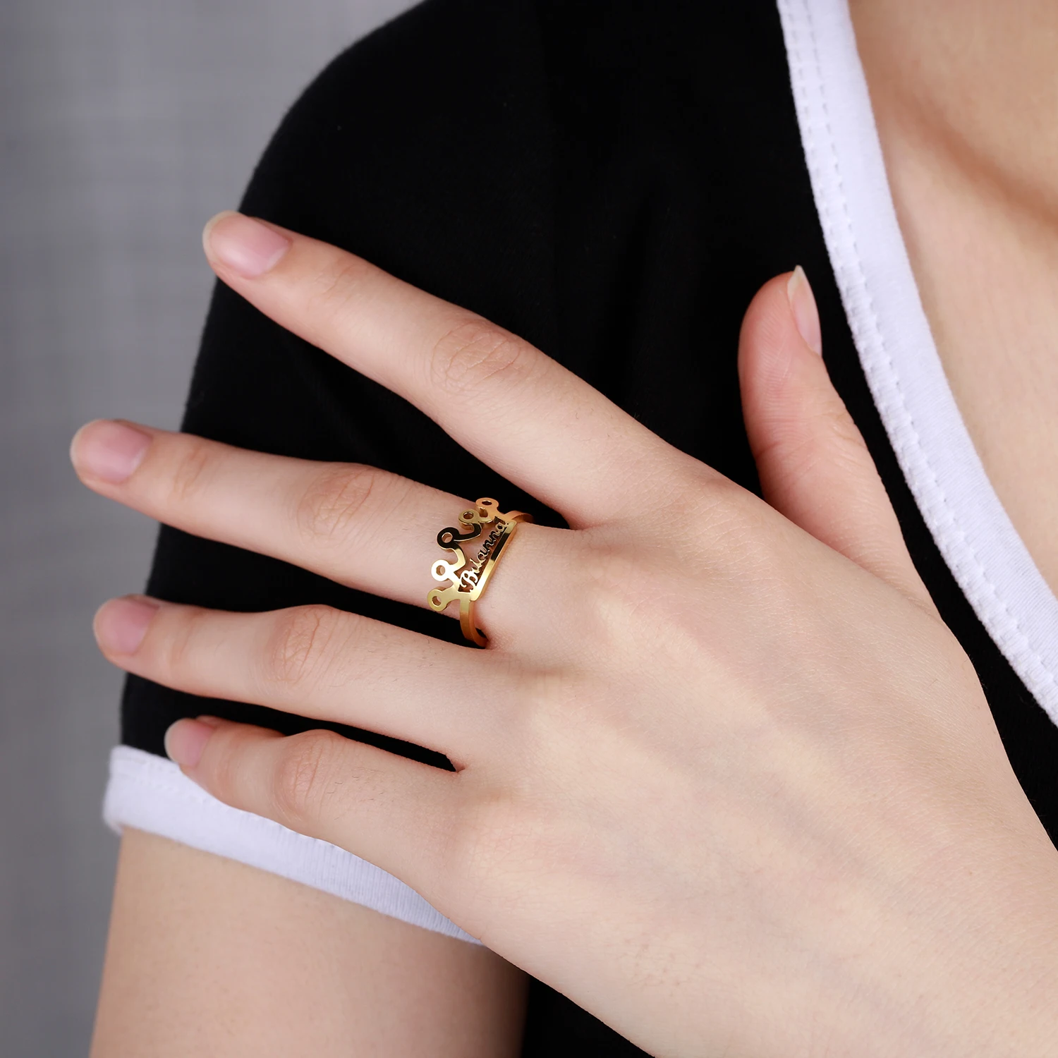 Индивидуальное кольцо с именем короны, простое кольцо с именем коро...