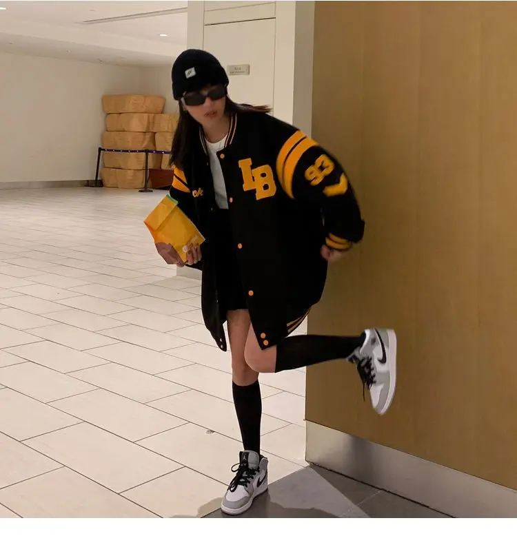 Женская куртка большого размера, корейская модная одежда, свитшот, бархатные осенне-зимние куртки, бейсбольная куртка-бомбер для колледжа, 2021