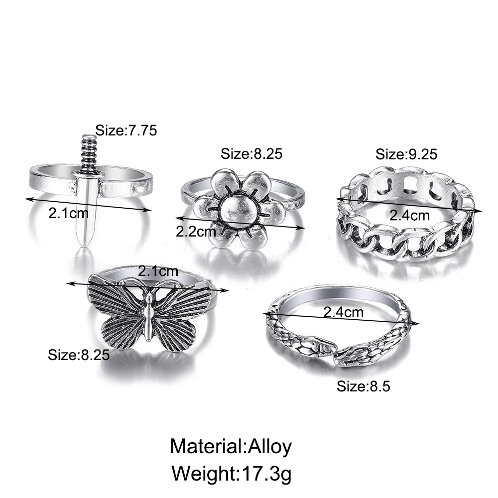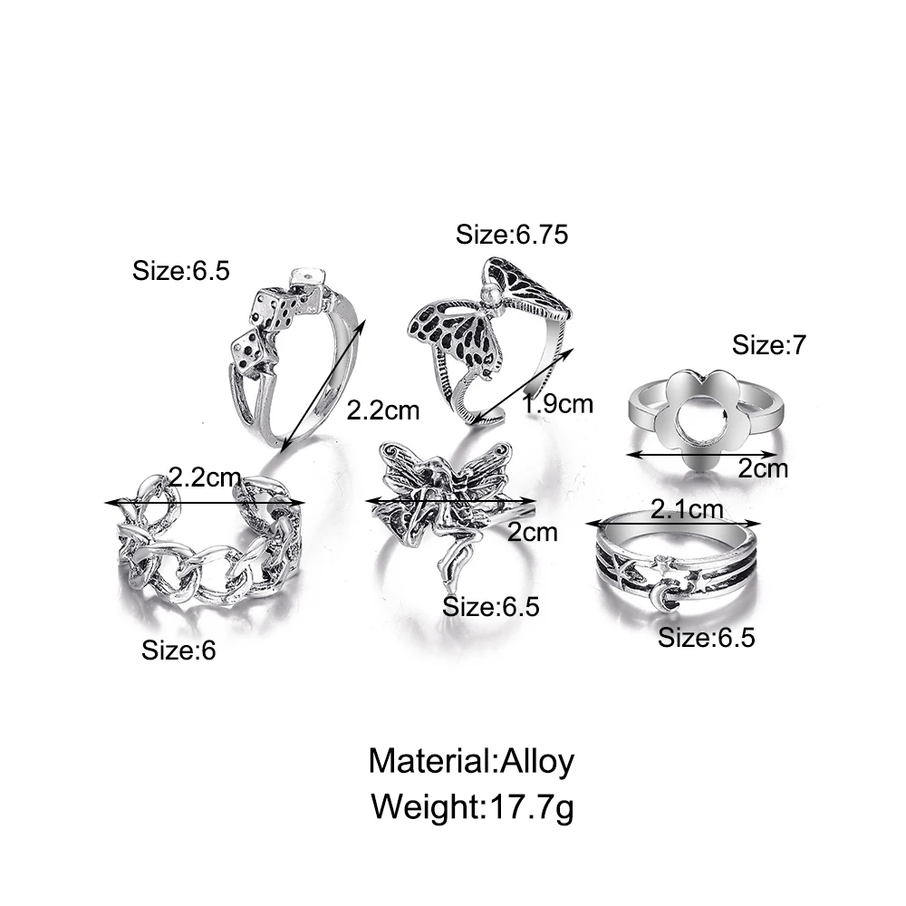 6 шт. винтажные готические бабочки угол цветок мульти Ele Мужские t кольца для женщин мужчин ретро личное кольцо на палец подарки