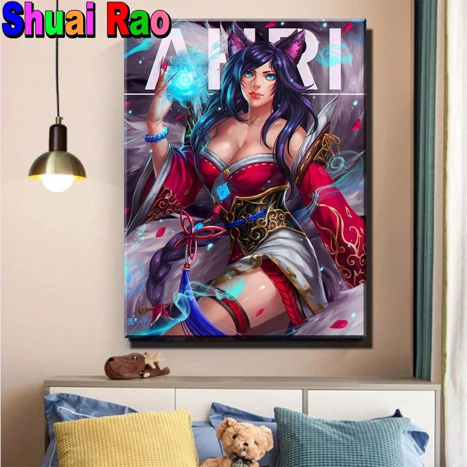 5D алмазная живопись Лига Легенд Ahri, сделай сам, полная выкладка, круглая Вышивка крестиком, для девочек, 3D украшение для дома,