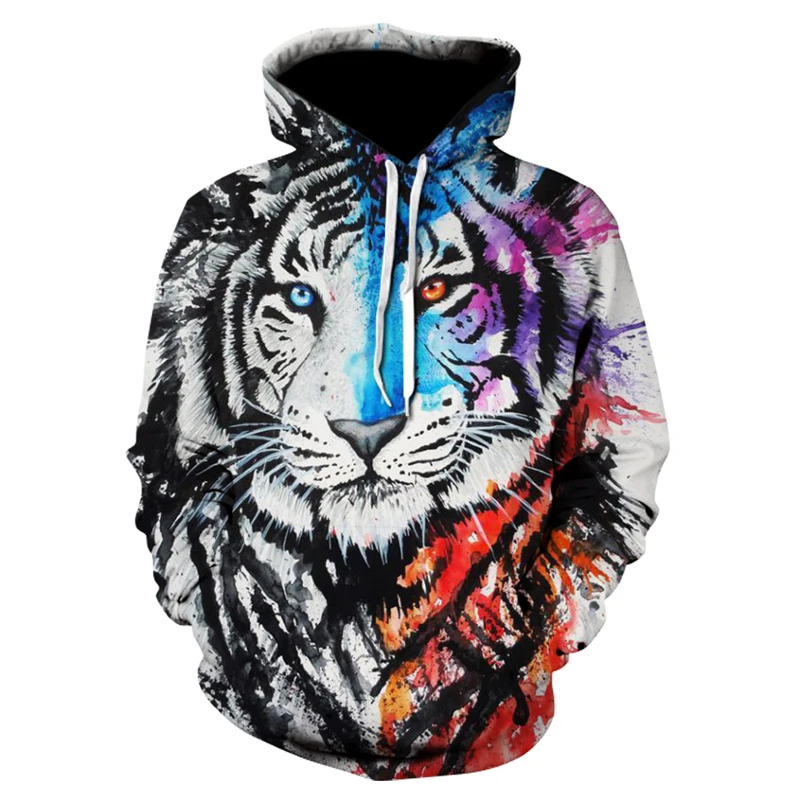 Мужские толстовки, толстовка в стиле хип-хоп, Забавный 3D тигр, Лев...