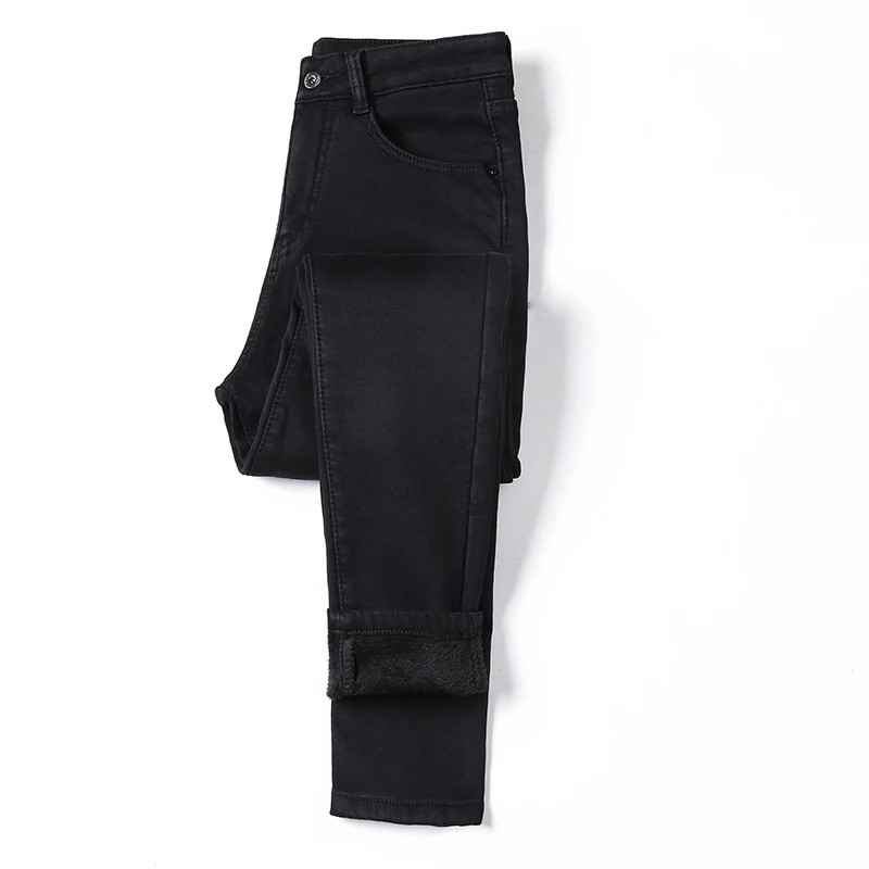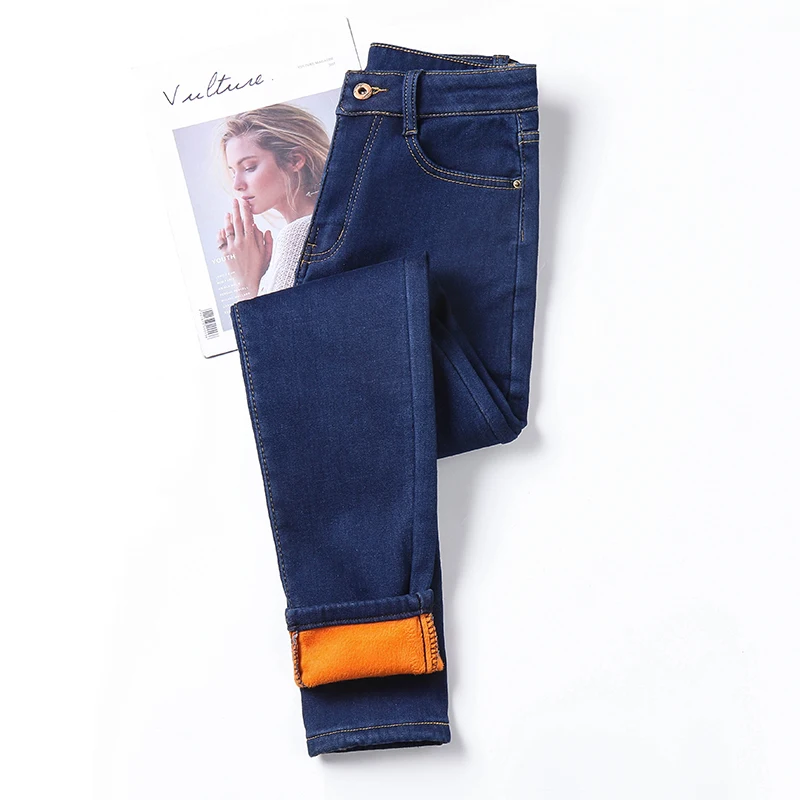 Джинсы эластичные женские с флисовой подкладкой, приталенные классические брюки из денима, модные повседневные бархатные штаны, большие размеры 26-40