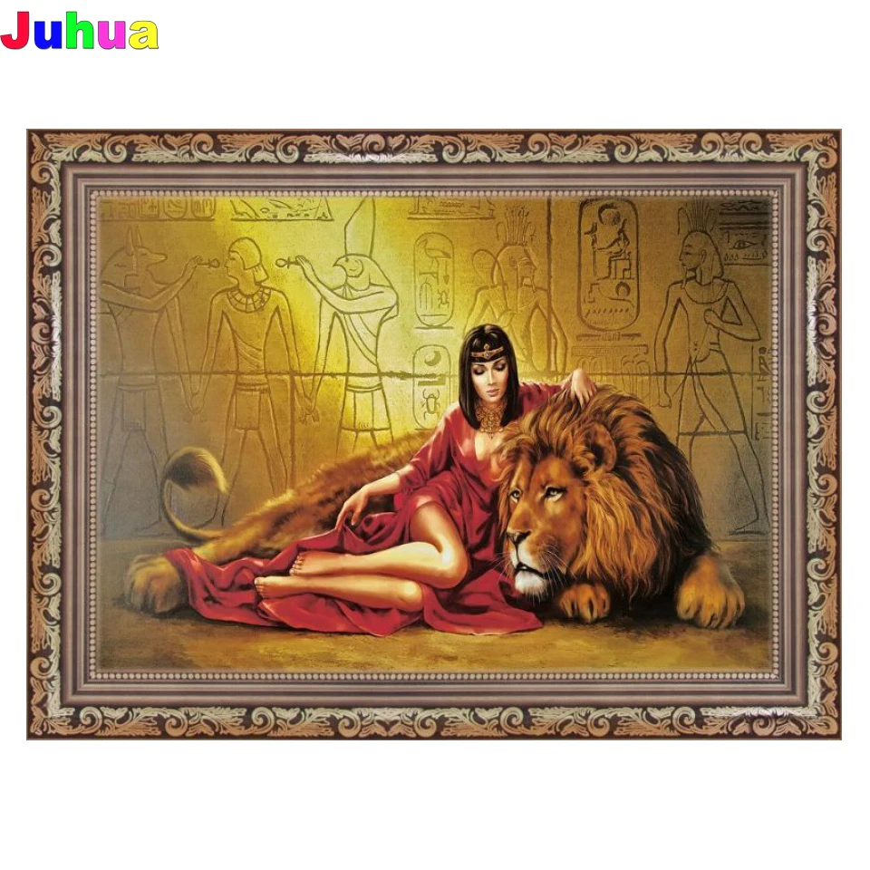 Фэнтези Клеопатра Лев DIY 5D алмазная живопись вышивка полная дрель горячая женщина зверь Алмазная вышивка Мозаика Искусство Декор стен