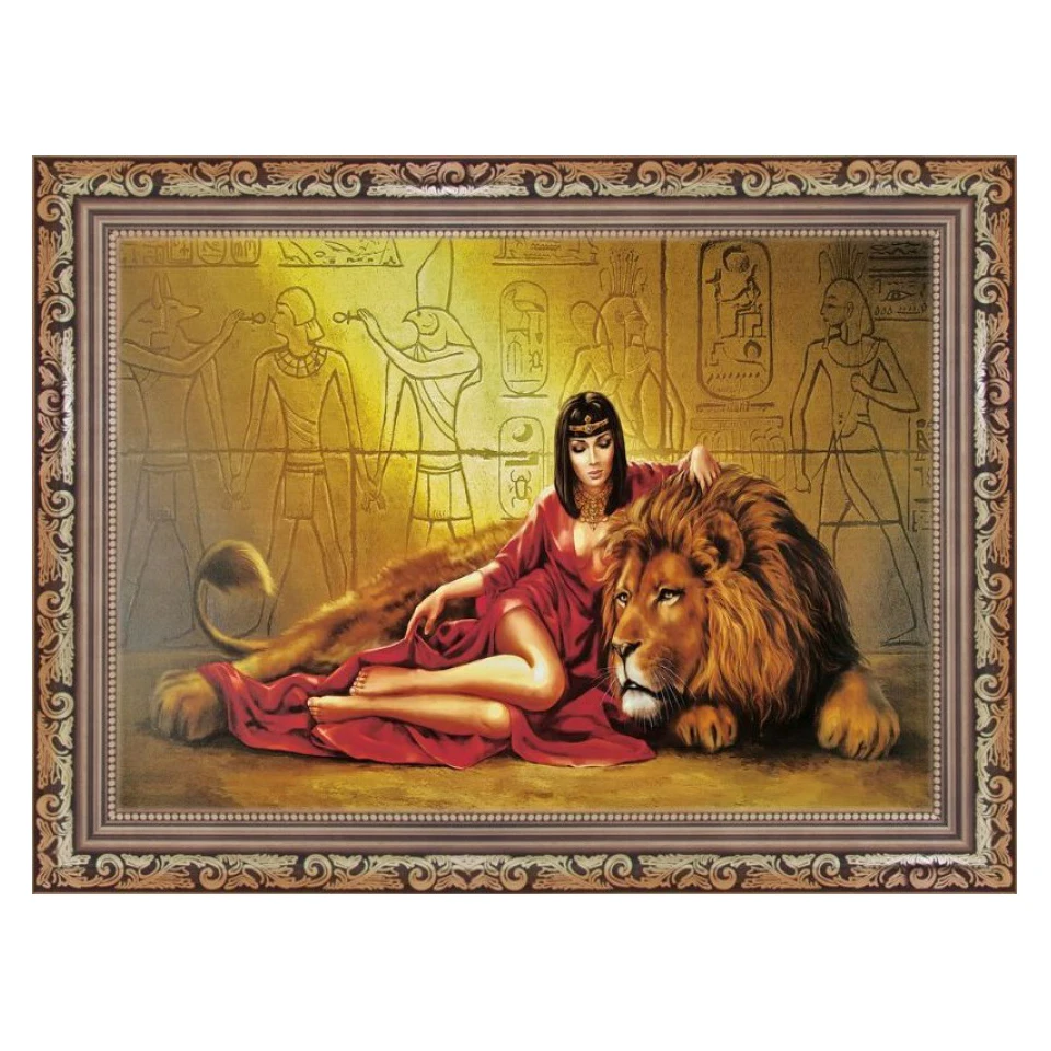 Алмазная живопись 5D "Фэнтези Клеопатра, Лев", картина из страз, картина с изображением женщины, животного, мозаика для украшения стен