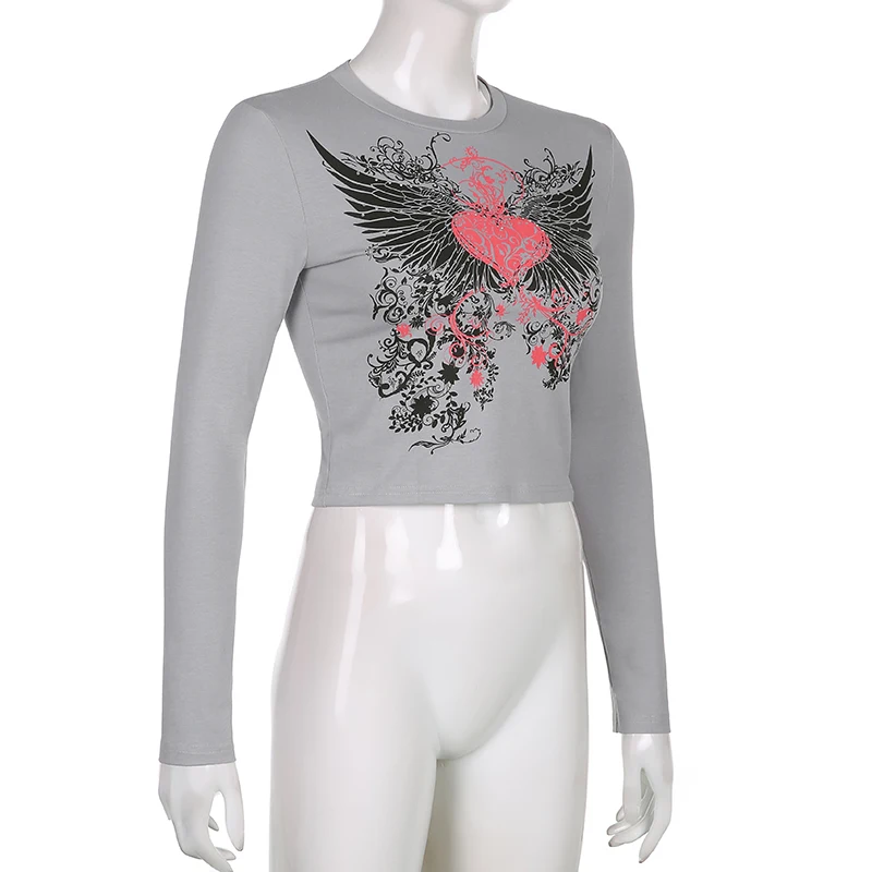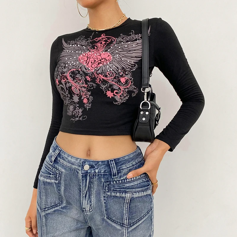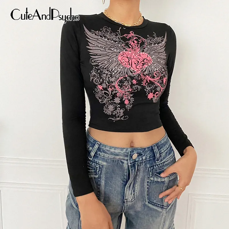 Укороченные футболки в стиле Харадзюку с графическим принтом Y2K, милые приталенные ретро-топы в стиле ретро, футболки, повседневная модная винтажная одежда, cuteandpsy
