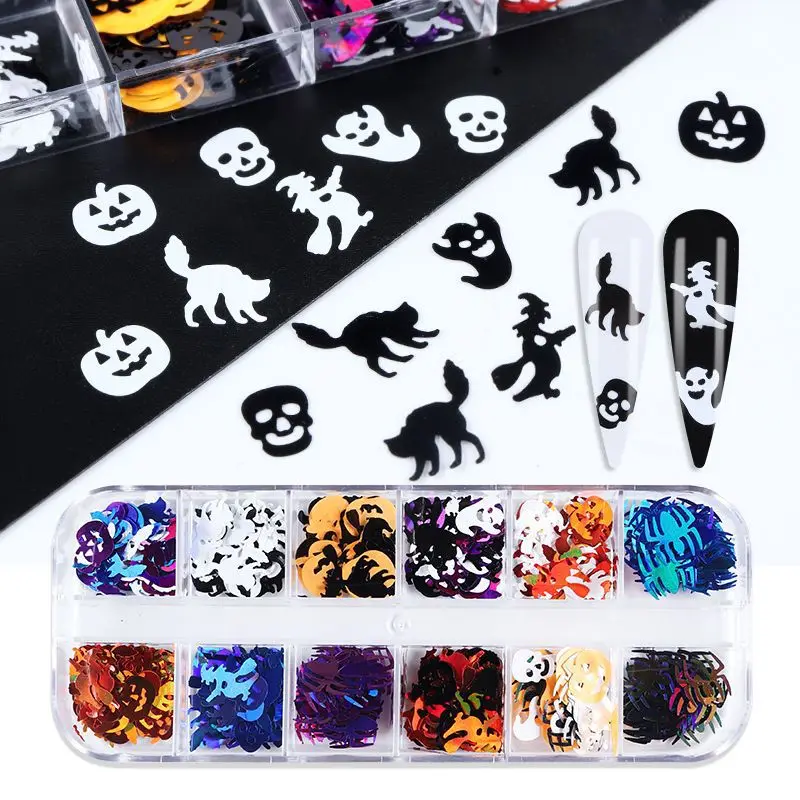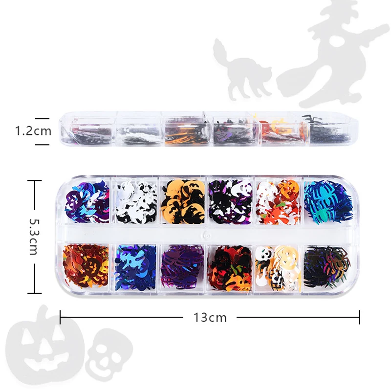 Блестящие хлопья для Хэллоуина, 12 ячеек, коробка для дизайна ногтей, глина, слайм, наполнитель, изготовление ювелирных изделий