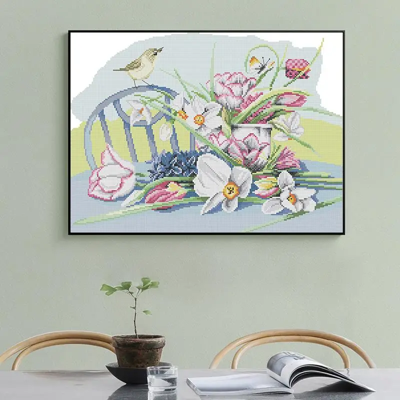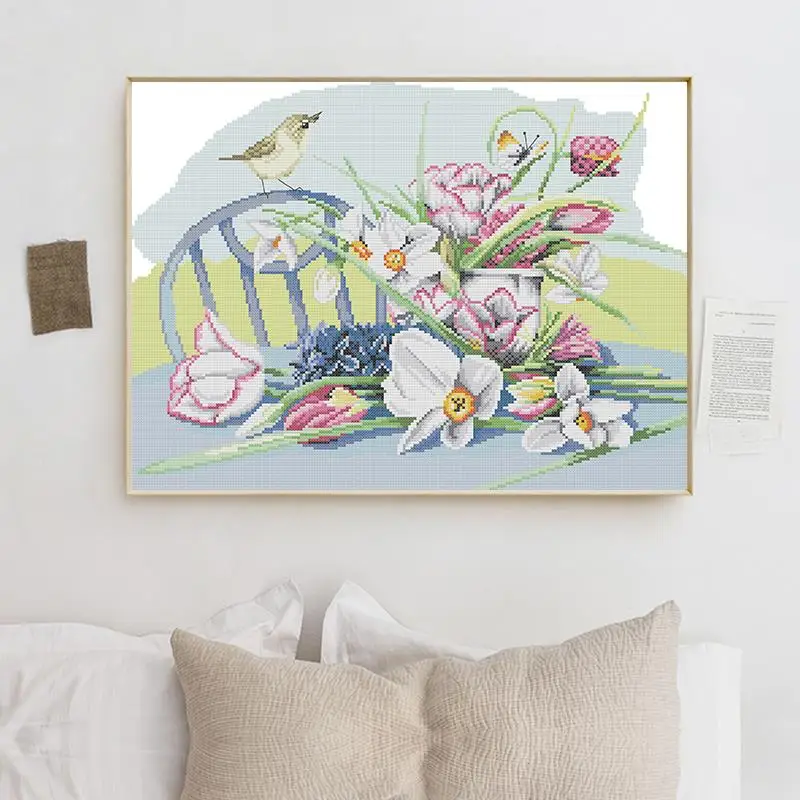 Набор для вышивки крестиком птицы и цветы 11CT 14CT напечатанный холст хлопок рукоделие домашное украшение ручной работы набор вышивки
