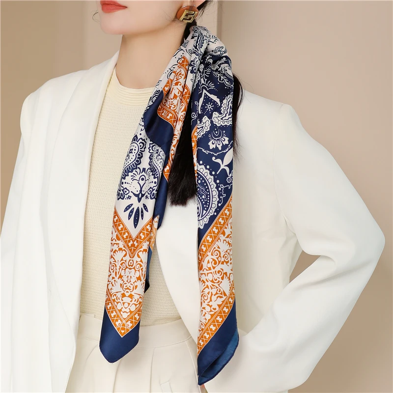 Роскошный квадратный шарф из Твила 90*90 см, хиджаб, шейный платок ...