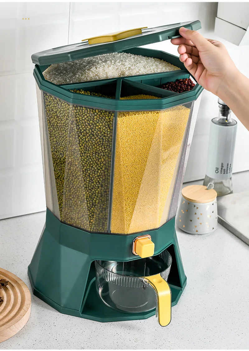 Бытовое герметичное ведро для риса, коробка для хранения в виде нажима, зернистость диспенсер, органайзер для продуктов