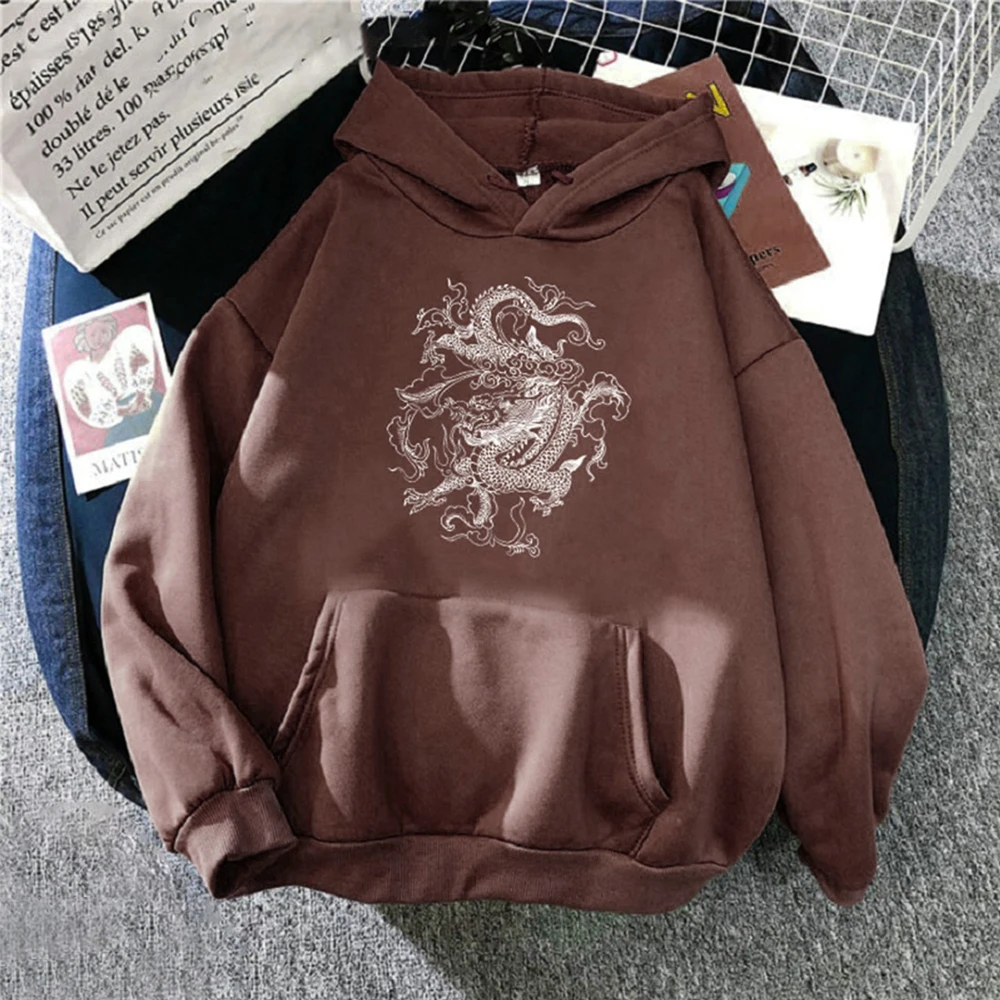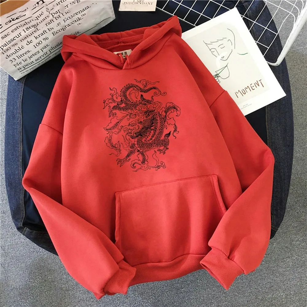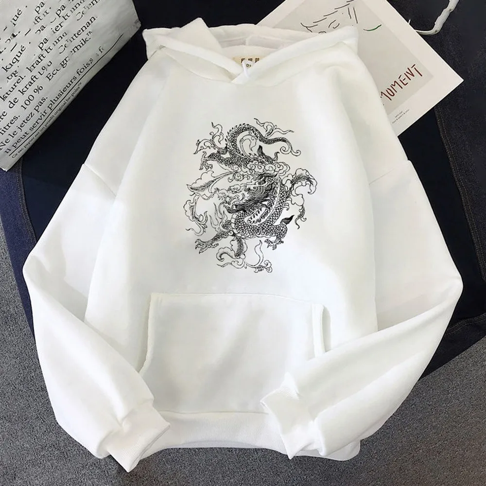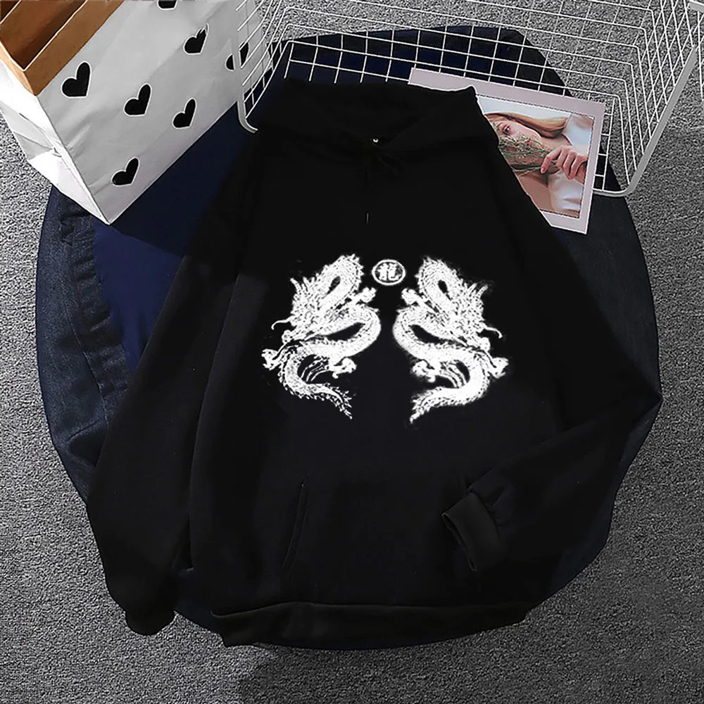 Женская толстовка с капюшоном и принтом дракона, в стиле Харадзюку
