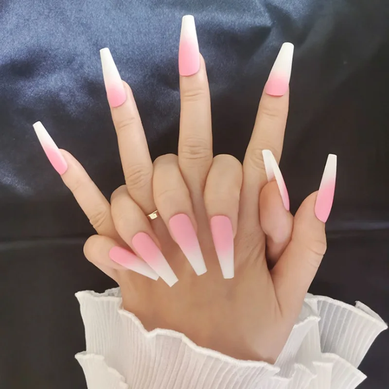 24 шт.коркор. накладные ногти в форме сердца с длинным Гроб Дизайн балерины апельсины любовь градиентные накладные ногти полное покрытие накладные ногти