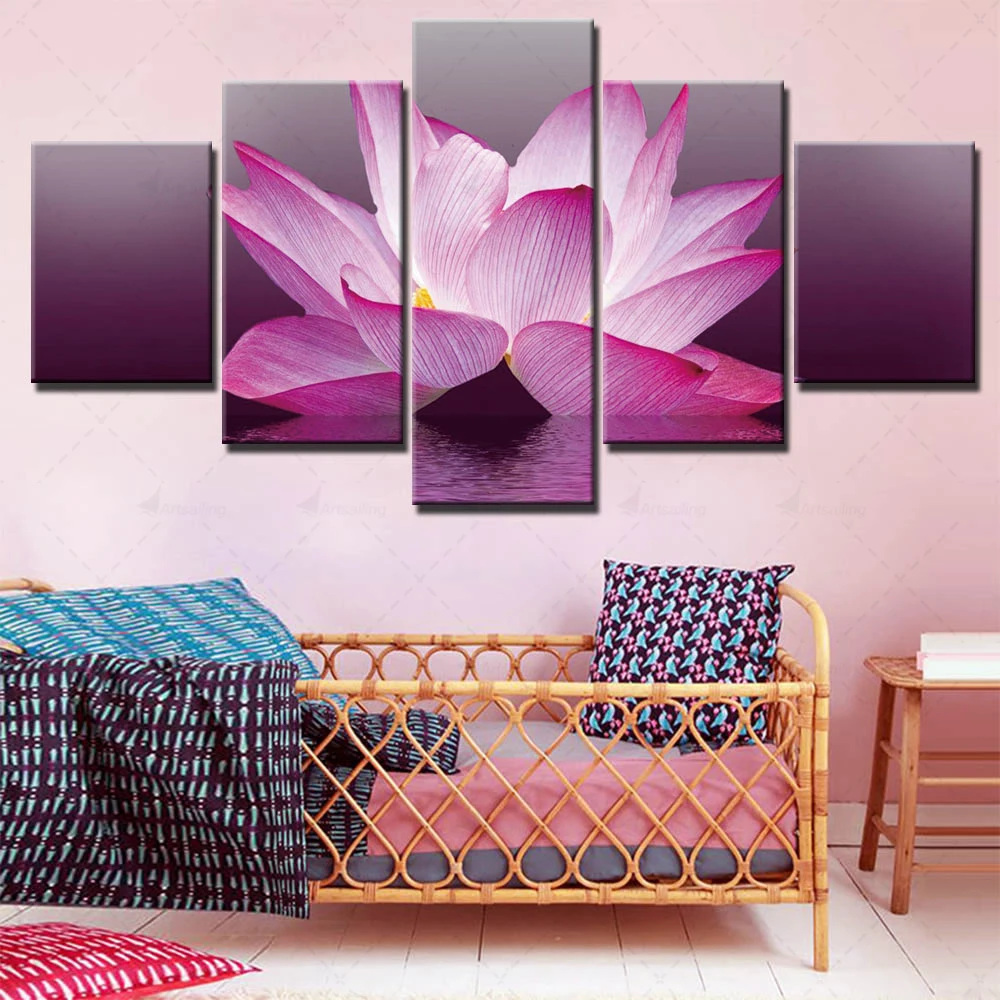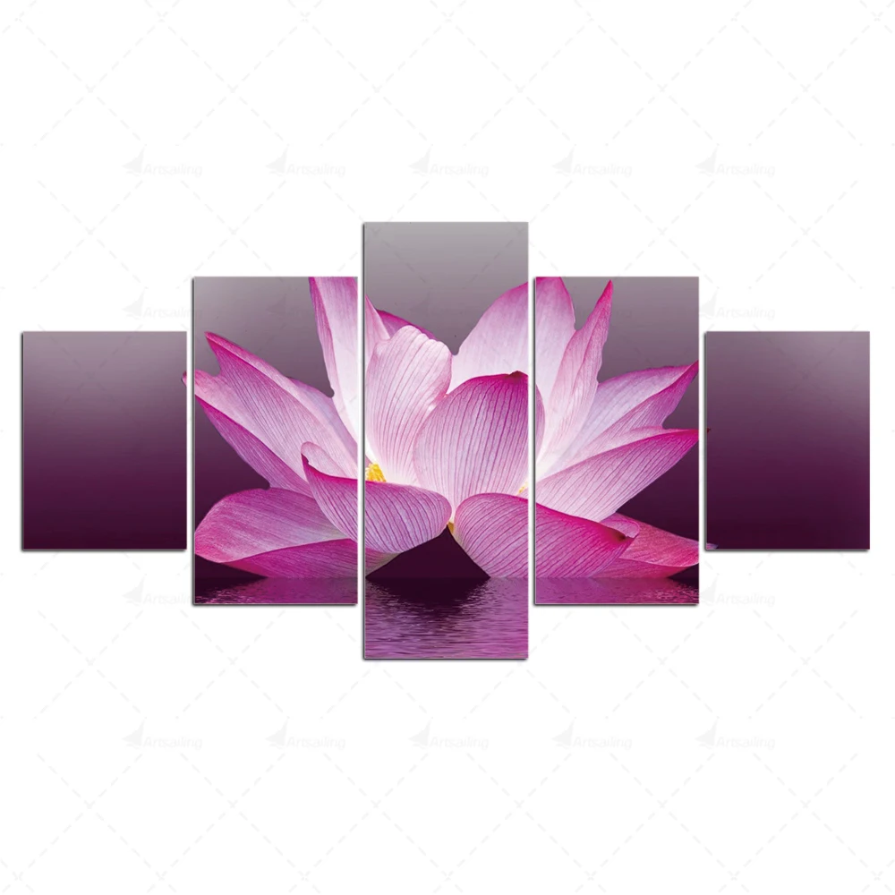 Hd-печать, украшение для дома, изображения лотоса, настенное искусство, современный модульный постер, картина, 5 панелей, холст для гостиной с рамкой