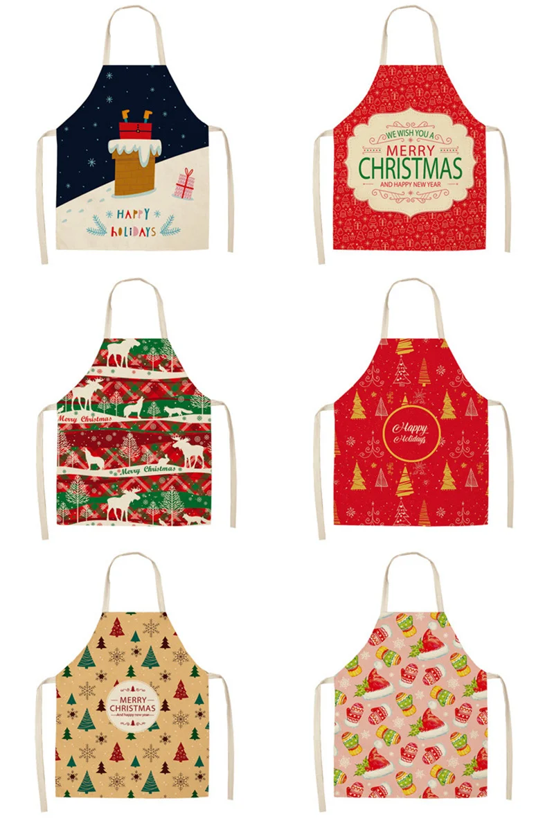Фартуки рождественские для женщин, кухонные фартуки для мам и детей, из хлопка и льна, маслостойкие, 26 цветов