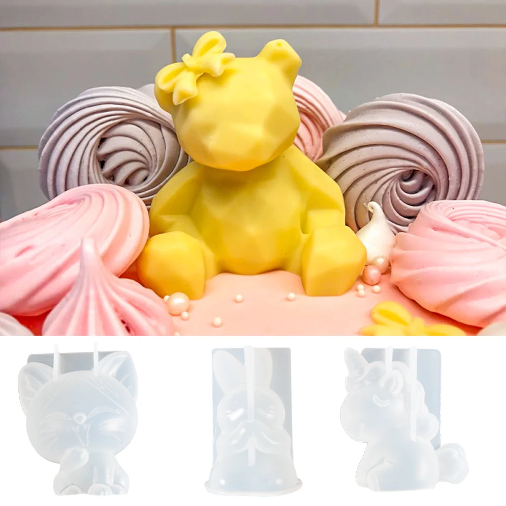 Силиконовая 3D форма сделай сам, геометрия, стерео, медведь, олень, кот, искусственное украшение, форма для украшения торта, искусственное украшение