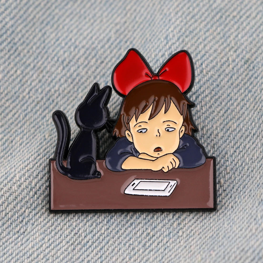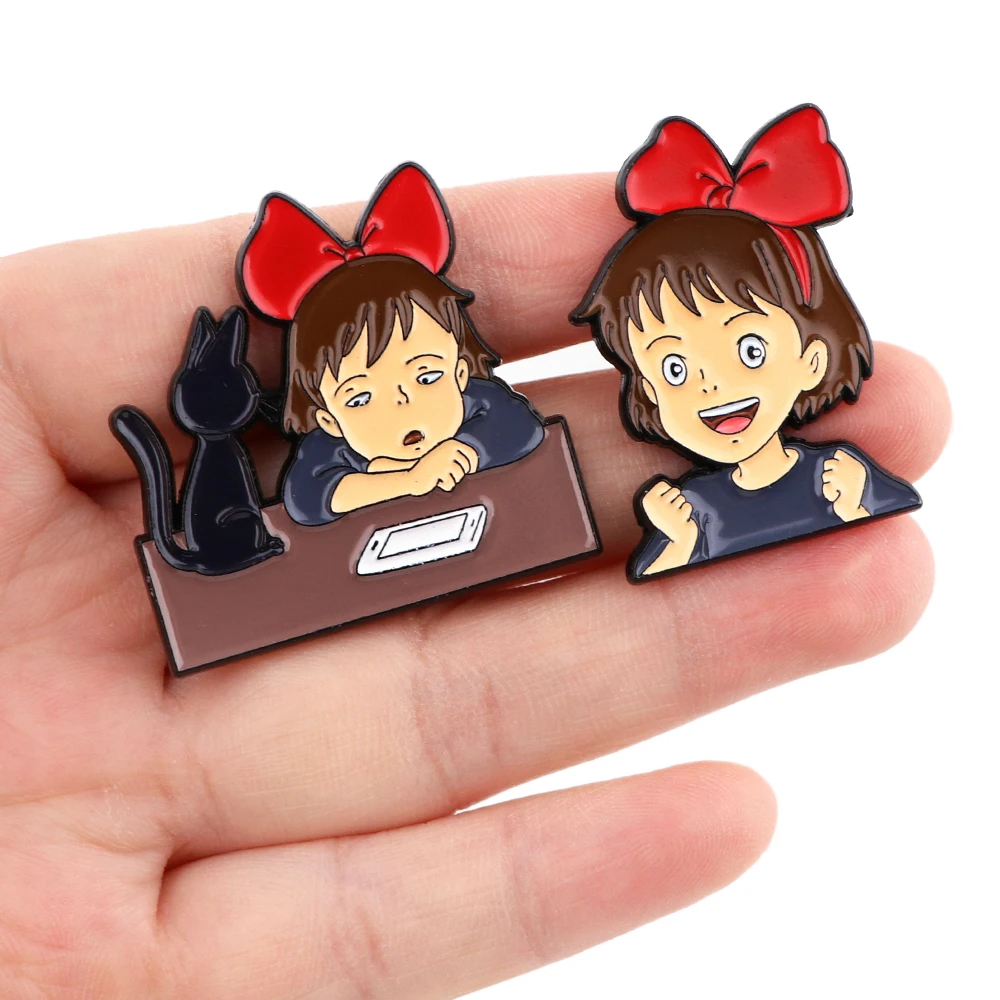 PF1353 эмалированная брошь в виде японского аниме девушки кошки, Милые Броши, булавка для лацкана, украшение для рюкзака, ювелирные изделия, подарочные аксессуары