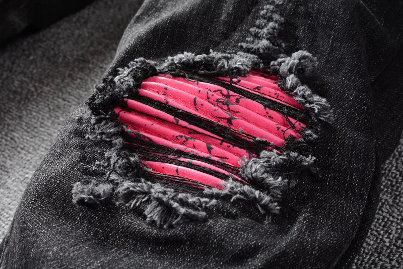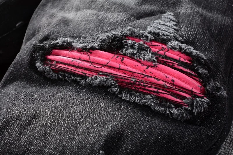 Мужские красные Лоскутные байкерские джинсы, уличная одежда, узкие ...