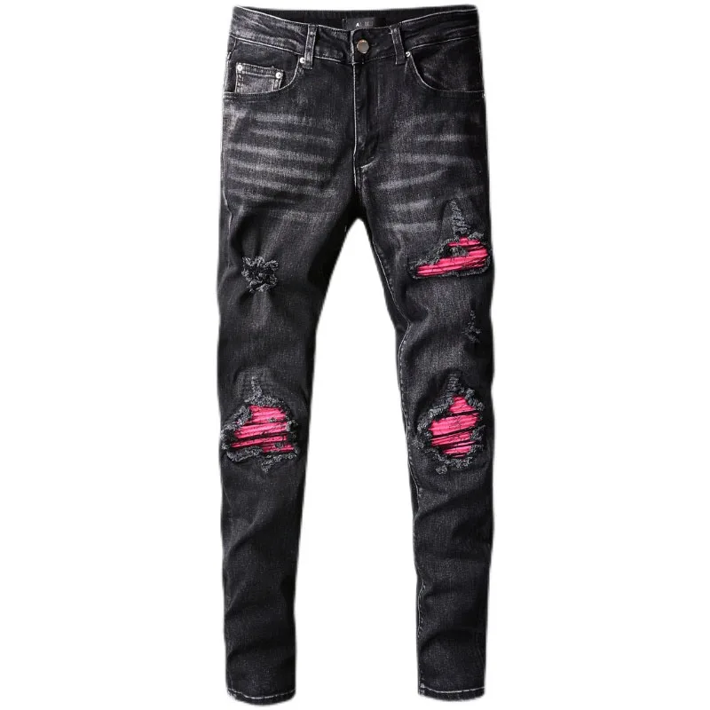 Джинсы мужские в стиле пэчворк, модные штаны в Корейском стиле, с э...