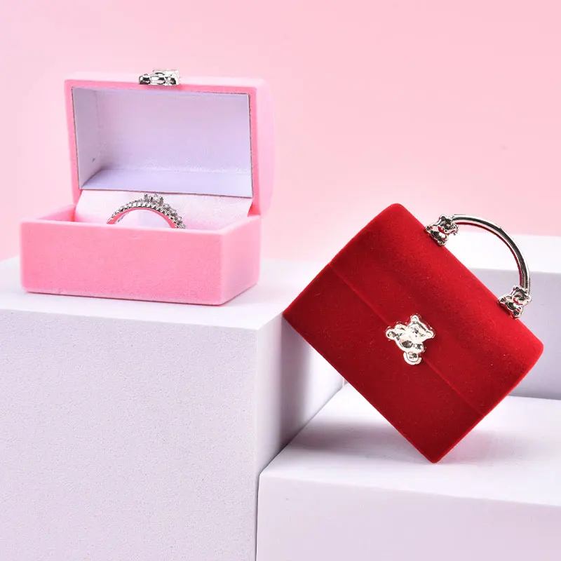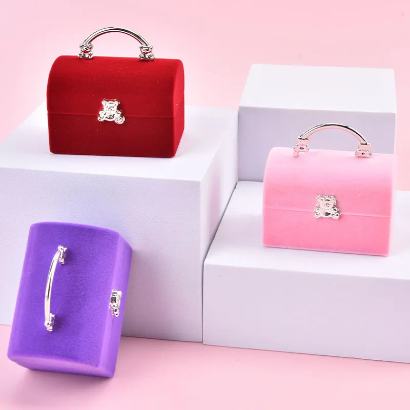 Простой портативный, цвета леденцов бархатный ящик для хранения юве...