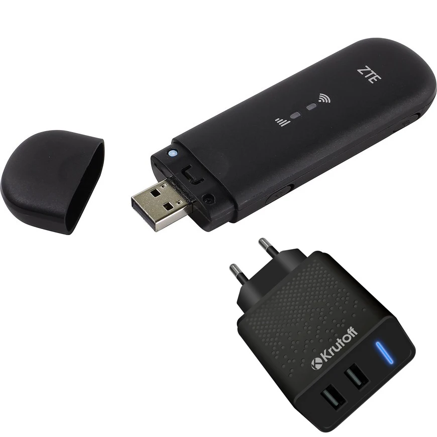 4G USB роутер с Wi-Fi ZTE 79RU 79U + Зарядное устройство Krutoff CH-07 2xUSB, 2.4A (black). Работает со всеми сим картами.