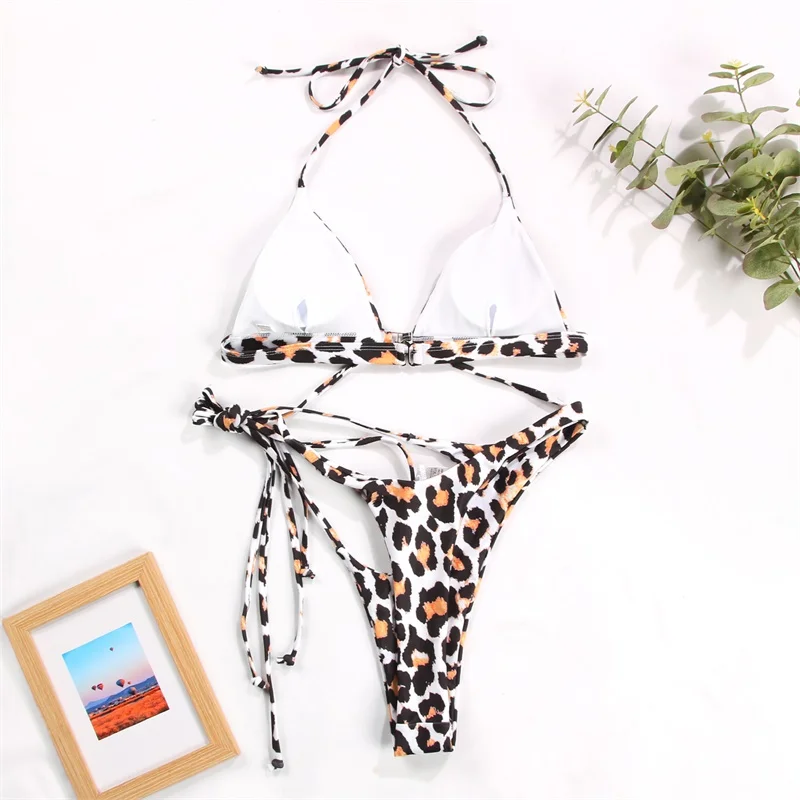 Купальник-бикини женский с леопардовым принтом, на шнуровке