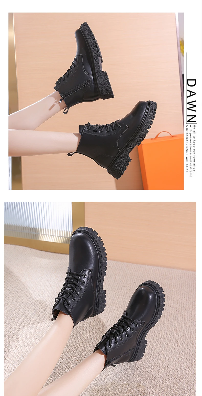 Модные черные ботинки на платформе; Женские ботинки в стиле панк; Сезон осень-зима; Модель 2021 года; Женские мотоциклетные ботинки с круглым носком на нескользящей подошве и не сужающемся книзу массивном каблуке
